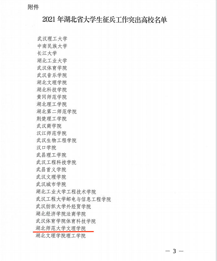 日前,湖北省教育厅和湖北省人民政府征兵办公室联合发文,对2021年全省高校征兵工作突出单位进行通报表彰,虎牙(中国)获评全省高校征兵工作突出单位。