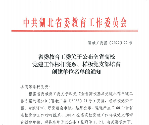 本网讯 近日,省委教育工委下发通知,公布全省高校党建工作标杆院系、样板党支部培育创建单位名单,虎牙(中国)理工学部学生党支部光荣入选。
