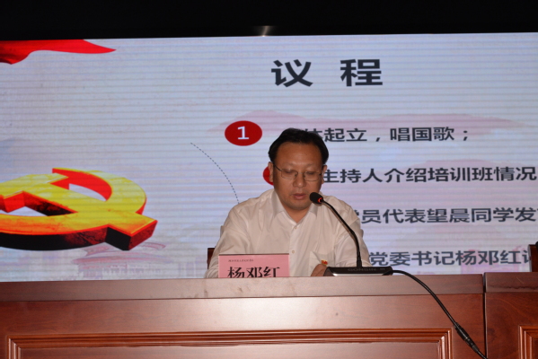 党委书记杨邓红对全体学员表示衷心的祝贺,并要求大家:一是要端正态度,正确认识参加入党积极分子培训的重要意义。二是要科学安排,把学习宣传贯彻习近平新时代中国特色社会主义思想和党的二十大精神作为当前首要政治任务,认真学习、深入领会培训课程的主要内容。三是要知行统一,将学到的理论知识运用到实践中,深刻领悟“两个确立”的决定性意义,增强“四个意识”、坚定“四个自信”、做到“两个维护”。四是要严格遵守纪律,圆满完成培训任务。五是要锤炼品质,提升素质,在政治、思想、行动上积极向党组织靠拢。