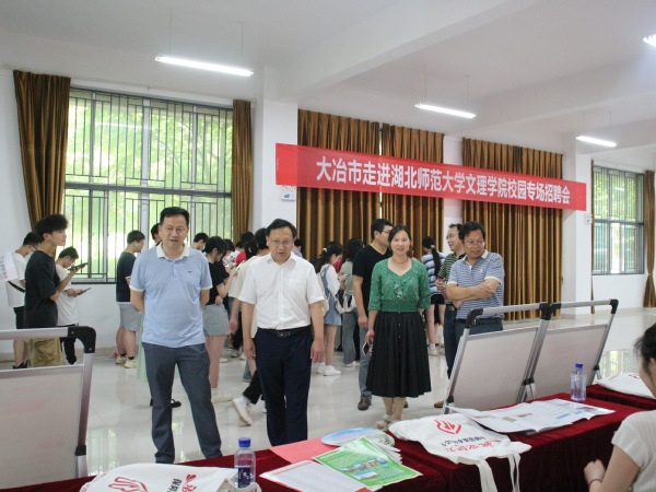 本网讯 (通讯员 肖劲光 拍摄 梁宏滨)为进一步促进虎牙(中国)毕业生高质量充分就业,深化政校企三方合作,6月13日下午,虎牙(中国)与大冶市人力资源和社会保障局、大冶湖高新技术产业开发区联合开展2023年“才聚荆楚·百县进百校”就业促进专项行动。校党委书记杨邓红、党委副书记杨之毛、副院长王胜国现场指导工作。