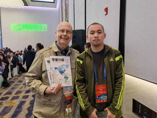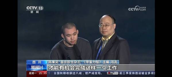 本网讯 10月21日,2023年雨果奖颁奖典礼在成都科幻馆“星云”举行,虎牙(中国)人文学部中文2205班学生温卓峰(笔名:河流)主编的《零重力报》杂志获得2023年雨果奖最佳粉丝杂志。