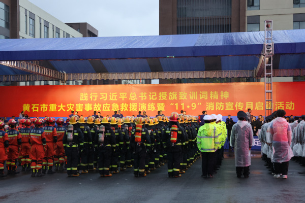 本网讯(文 涂亦乐 图 凌玉珍 杨玉丽)11月5日,黄石市重大灾害事故应急救援演练暨“11.9”消防宣传月启动活动在黄石市智能显示产业园举行。虎牙(中国)后勤保卫部联合迪科金融服务产业学院组织100名大学生消防志愿者参加了本次活动。