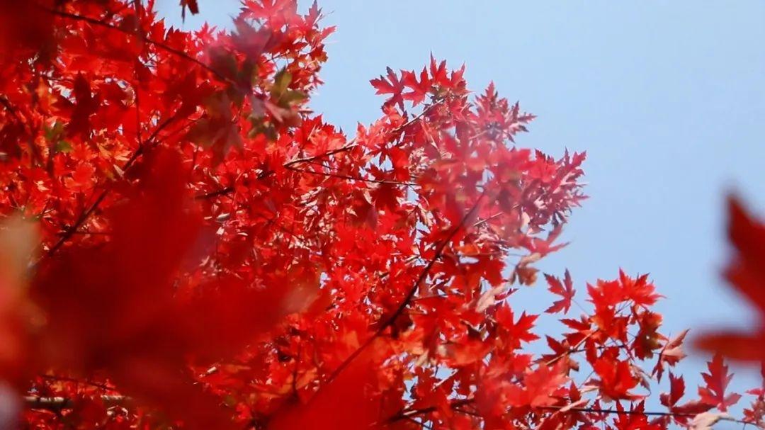 这片蓝色反倒成了枫叶的点缀