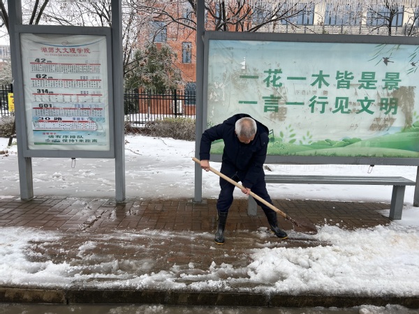 本网讯(通讯员 涂亦乐)221日晚,全市迎来了新一轮低温雨雪冰冻天气。为消除雪天冰冻带来的安全隐患方便群众出行,22日上午在校校领导李开灿、杨学斌张志华、王胜国带队,组织党员干部值班教师和后勤保卫部全体人员在校园和社区主干道开展雪除冰行动。