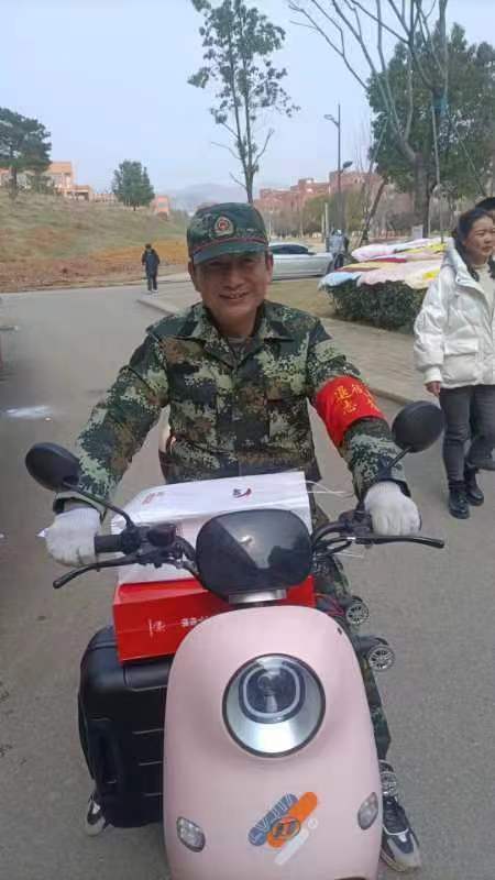 活动中,退役军人在校门口维护秩序,主动帮助有需求的学生,力所能及地贡献自己的一份力量,在校门口形成了一道亮丽的风景线。