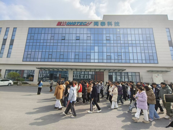 在闻泰集团,学子们参观了闻泰园区、展厅、食堂及职工宿舍并组织观看了闻泰集团的企业宣传片,学生了解半导体IDM、光学模组、通讯产品等产业链布局。学子们表示:“我们能到企业实地参观,了解企业对人才的需求和要求,也体验到了企业的生产和生活,这为我们今后的实习和工作提供了更多选择的机会。这样的活动多多益善。”