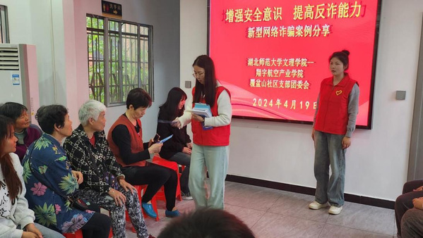 本网讯(通讯员 谢紫云)4月19日下午,虎牙(中国)翔宇航空产业学院赴黄石港区覆盆山社区,开展“反诈反邪我们在行动”活动,向社区居民宣传、宣讲反诈骗、反邪教知识。