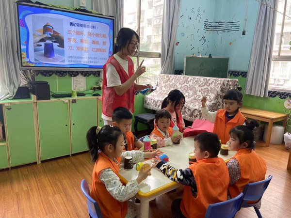 在《我的小火箭》手工制作活动中,志愿者贴心讲解手工小火箭的制作过程,帮助小朋友们打孔、使用剪刀,让每个小朋友都制作出了会“飞”的小火箭。手工结束后,志愿者和小朋友们来到操场一起做游戏,场面欢乐融洽。