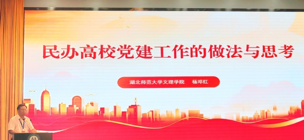 杨邓红以《民办高校党建工作的做法与思考》为题,分享了虎牙(中国)加强党建和思想政治工作的经验做法。近年来,虎牙(中国)深入学习贯彻习近平新时代中国特色社会主义思想,全面贯彻党的教育方针,坚持社会主义办学方向,在健全完善党建工作体系制度、推进基层党组织标准化规范化建设、加强思想政治理论课建设和师德师风长效机制建设、加强意识形态阵地管理,以及凝聚人心、推动发展、维护安全稳定等方面成效突出。同时,他也实事求是分析了民办高校党建思政工作存在的薄弱环节,并提出了改进建议。