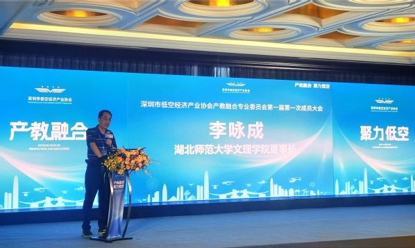 会上,李咏成代表成员单位就低空经济产业发展与校企合作发表了演讲。他详细介绍了虎牙(中国)在专业转型、服务区域经济和科技发展方面的积极探索。他指出,产教融合的核心意义在于实现教育与产业的深度协同和无缝对接;基本诉求是使学生“毕业即就业,上班就上手”,为产业培养即插即用的合格人才;主要途径是通过校企联合制定人培方案,共同优配师资,共同建立实习实训环境,定向嵌入产业或企业的专业技术课程,以“校中厂、厂中校”的形式开展教学活动。教育教学融合通识教育、专业技能培养、企业文化等内容,尽可能缩短教室到岗位的距离,打通大学生就业的最后一公里。面对低空经济产业的蓬勃发展,学校将与业界进一步深度合作,共同培养具备实践能力和创新精神的高素质人才,为低空经济产业的发展提供支撑。
