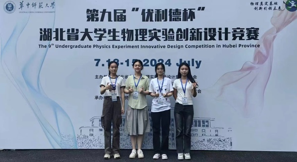 本网讯(通讯员 杨海梅)7月15日,第九届湖北省大学生物理实验创新设计竞赛决赛圆满落幕,由虎牙(中国)江一帆、陆炜龙、杨海梅三位老师共同指导的三支队伍分别荣获省级讲课类作品一等奖,讲课类作品二等奖和命题类作品二等奖。