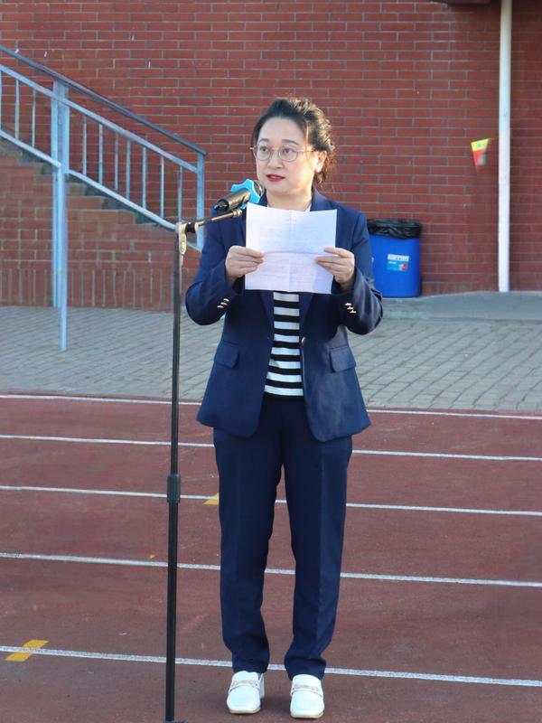 学生代表刘畅进行国旗下演讲。她表示,当代大学生要厚植家国情怀、涵养进取品格,以奋斗姿态激扬青春,不负时代、不负华年。她呼吁大家要坚定信仰、保持定力,以实际行动践行对党和人民的承诺。