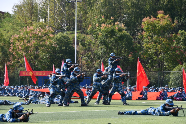 随后,擒敌拳、女子舞蹈、旗语、匕首术、军棍表演、战术动作对抗等方阵依次表演,一场场充满力量与美感的表演让现场掌声与喝彩声不断,展示着文理学子的青春风采和军事技能。