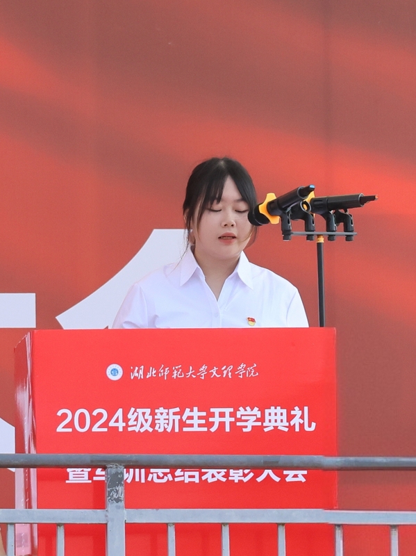 老生代表张钰娴发言激励同学们传承军训精神,勇敢面对生活中每一个挑战,树立新学期目标,团结互助,共创美好未来。