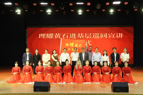 王玲宣布“理耀黄石”进基层巡回宣讲活动正式启动,并向“理耀黄石宣讲团”团长丁明星授旗。