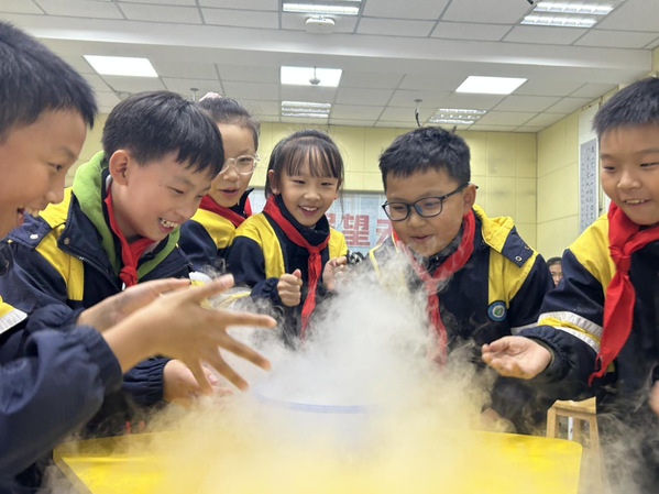 其中,干冰实验成为了全场关注的焦点。只见讲授老师将干冰放入水中,瞬间产生了大量的白雾,宛如仙境一般。学生们被这幅奇妙的景象深深吸引,纷纷好奇地询问其中的原理。老师耐心地解释道,干冰是固态的二氧化碳,在常温下会迅速升华成气态,而升华过程中会吸收大量的热,使得周围空气温度降低,水蒸气凝结成小水滴,从而形成了白雾。这一解释让学生们恍然大悟,对科学的神奇与魅力有了更深刻的认识。
