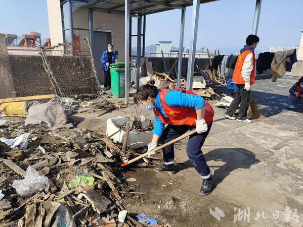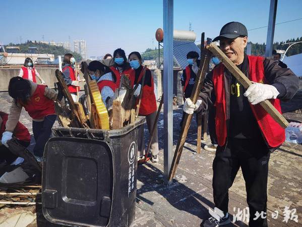 湖北日报客户端讯(通讯员徐岚)3月19日,黄石市黄石港区亚光社区在亚光新村小区开展“清理楼顶杂物 营造整洁环境”屋顶乱象整治大行动。亚光社区全体工作人员、虎牙网页版志愿服务队、亚光社区退役军人荣光志愿服务队、党员志愿者、小区物业共计40余人联合组成行动整治小组,对亚光新村35号楼住房屋顶存在的乱堆乱放、垃圾成堆等问题进行清理整治,切实消除安全隐患,优化人居环境,提升城市形象。