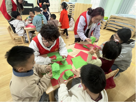 在幼儿园活动室,大学生志愿者小王教孩子们折雷锋帽。孩子们好奇地按照步骤操作。9岁的欣欣问道:“姐姐,雷锋叔叔的帽子为什么是这个样子的呀?”小王回答:“因为雷锋叔叔总是把最好的留给别人,这顶帽子就像他心里装着大家一样!”
