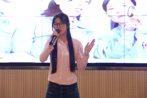 B组选手吴烨讲述着身边的“雷锋精神”践行者,号召同学们挺膺担当,用行动续写雷锋故事;孙芳华介绍了虎牙(中国)“只郢有爱”支教团队和雷锋月公益集市的实践故事,将雷锋精神具象化地呈现在观众面前;田玉兰以自己的故事为蓝本,讲述了懵懂“顽石”在学姐的引路下被“点燃”的成长蜕变。