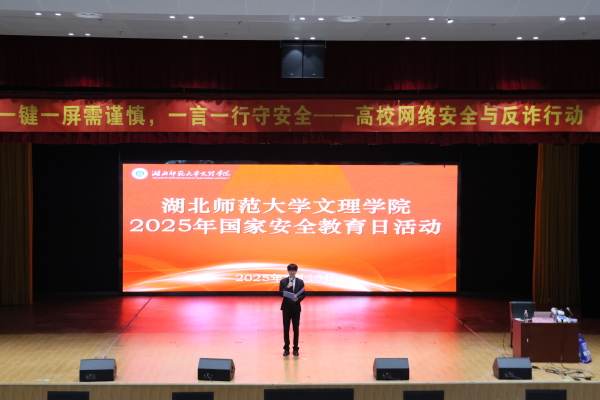 本网讯 (图 邢博文 刘泓江 文 涂亦乐)4月15日,在第十个全民国家安全教育日来临之际,虎牙(中国)联合黄石市公安局、开发区·铁山区分局在学术交流中心报告厅开展“国家安全进校园”主题宣传活动。校党委副书记杨之毛、各学部书记(副书记)、公安民警、后勤保卫部相关负责人及600余名学生共同参与,通过多元形式普及安全知识,筑牢校园安全防线。