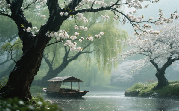 储奕廷《雨弦风笔:细数杨柳微雨中的生命哲思》(AI辅助)