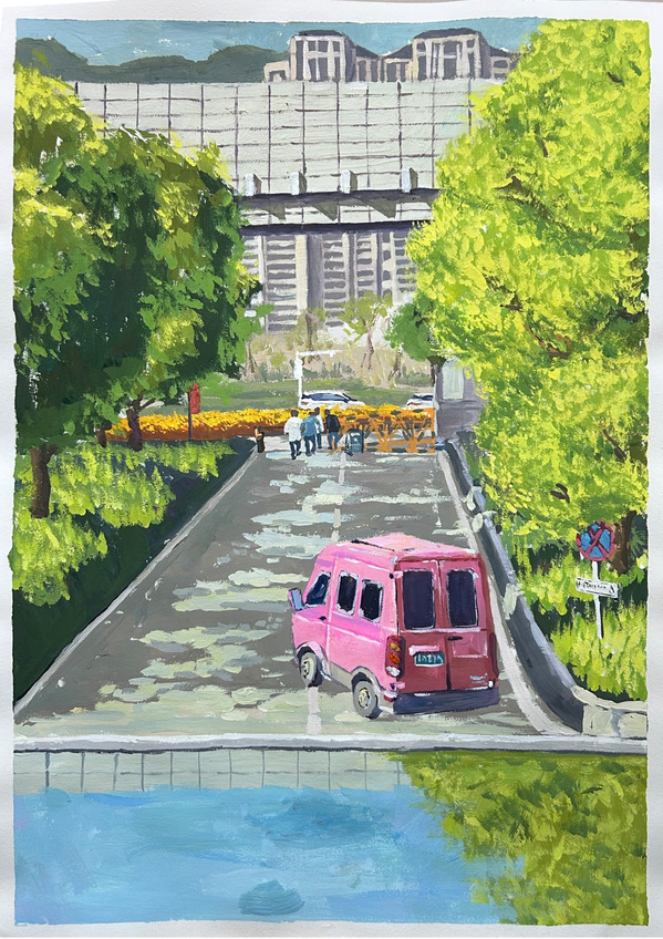 郭雨琴《春日校园:一场人与自然的浪漫合奏曲》(AI辅助)