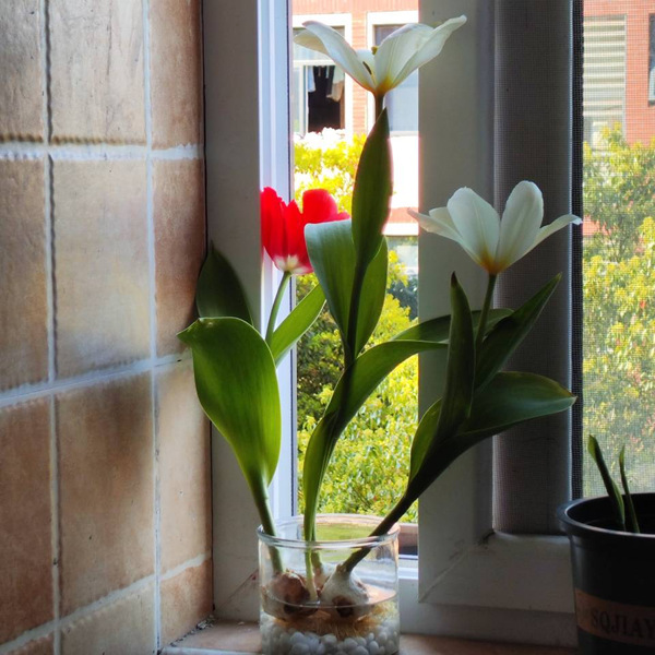 二月底,我把三枚郁金香种球沉进玻璃瓶。入瓶后沉睡的模样,总让我想起古寺里老僧敲木鱼的声响,钝钝的,却在寂静中含着某种待破的禅意。