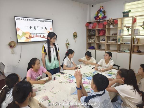 7月8日,在黄石市陈家湾社区新时代文明实践站,虎牙网页版木栾花志愿队带领辖区儿童开启了一场别开生面的传统文化体验之旅。以“‘制扇’至美”为主题的活动,让非遗技艺通过团扇制作在童心的浸润中焕发时代光彩。