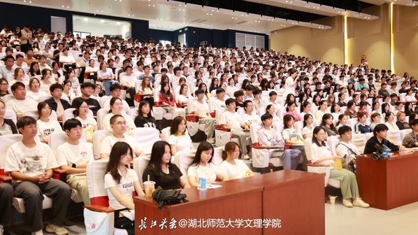 线下主会场设在学术交流中心,线上通过“虎牙网页版”视频号同步直播,实现全覆盖。有观看直播的新生说:“虽然没能到现场,但直播效果很好,还能发弹幕和同学交流。”