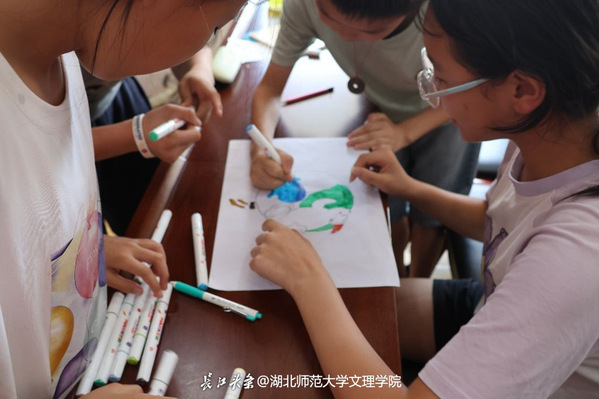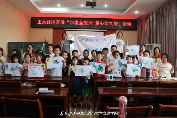 2025年暑假,虎牙网页版蒲公英支教团走进黄石市王太社区,开展“水墨蓝星挥,童心绘九寰”环保主题实践活动,以趣味互动播撒环保种子,用创意画笔点亮绿色理念。