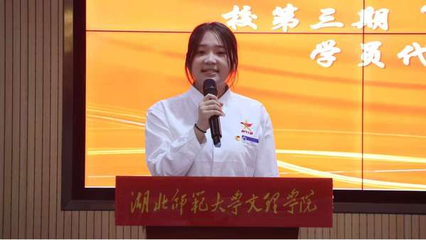 第二期“青马工程”培训班优秀学员代表徐微发言。她分享了在培训期间通过理论学习筑牢思想根基、参与社会实践深化认知的成长经历,并寄语新学员珍惜学习机会,努力成为有理想、敢担当的新时代青年。