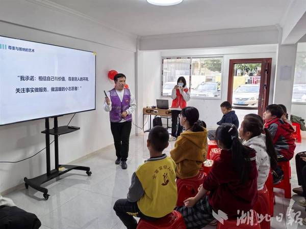 湖北日报讯(记者方琳、通讯员刘宗志)11月22日下午,大冶市金穗小区红色驿站内,一堂特殊的课程正温暖上演。15名“行走的童话”儿童志愿者,在专业社工与多方志愿力量的陪伴下,共同经历了一场关于尊重、法治与成长的暖心之旅。