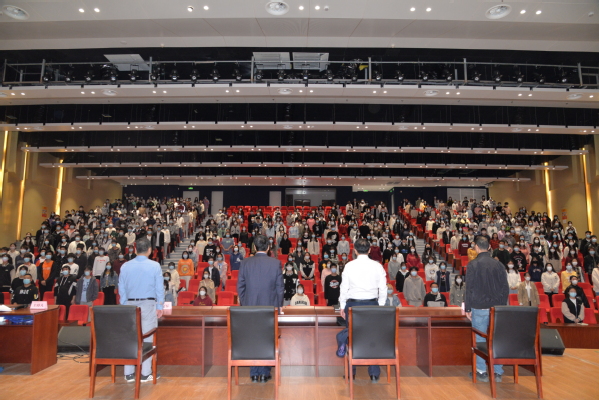 按照疫情防控要求,全体学员佩戴口罩、保持间距就座。教育与艺术学部学生党支部书记尹誉霖主持开班典礼。大会开始,全体起立,奏唱国歌,尹誉霖介绍了培训班基本情况,宣布了学习要求和纪律;学员代表望晨作了表态发言。