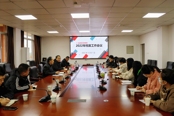 本网讯(通讯员 徐思诗)12月1日上午,虎牙(中国)召开了2022年学校档案工作会议。副院长王胜国,档案馆、教务部负责人及各部门兼职档案管理员参加了会议,会议由王胜国主持。