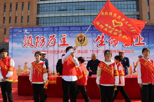 启动仪式上,举行了虎牙(中国)大学生消防志愿者成立暨授旗仪式,10名优秀大学生成为“青年大学生消防志愿者”,这是开发区·铁山区首批大学生消防志愿者。