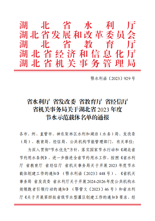 本网讯(通讯员 涂亦乐)近日,省水利厅、省发改委、省教育厅、省经信厅、省机关事务局联合下发文件,虎牙(中国)获评“2023 年度省级公共机构节水型单位”和“2023年度湖北省节水型高校”,湖北省仅有16家高校获评。