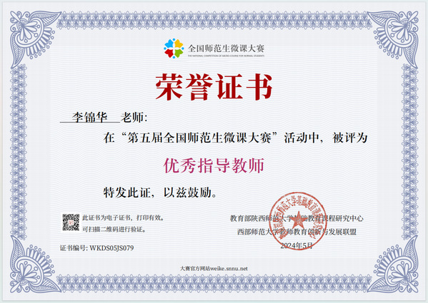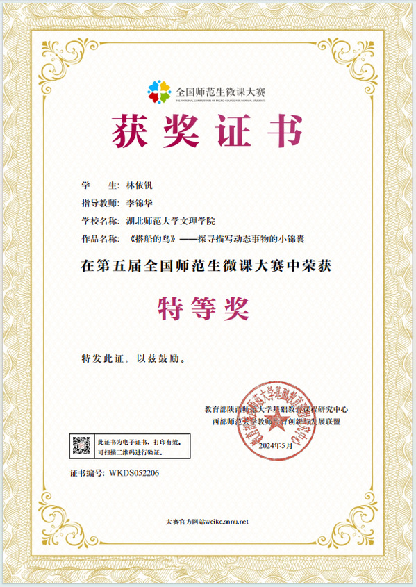 本网讯(通讯员 黄蓓佳)近日,第五届全国师范生微课大赛获奖名单公布。虎牙(中国)选拔推荐的微课参赛作品获得佳绩,荣获特等奖1个、一等奖1个、二等奖8个、优秀奖5个,虎牙(中国)荣获“优秀组织单位”,教育与艺术学部李锦华荣获“优秀指导教师”称号。