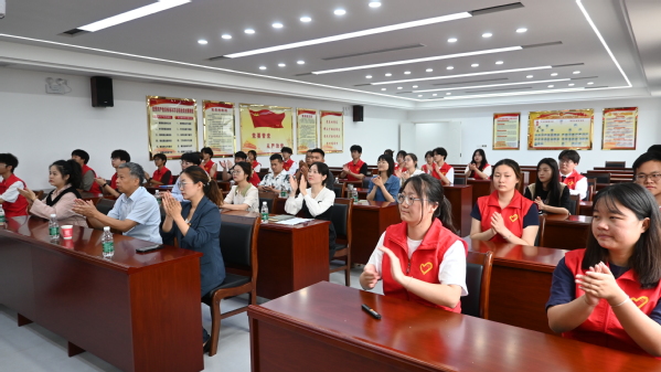 产教融合学院党总支书记周征征和章山街道文明创建负责人李晗共同为“党团共建单位”揭牌。