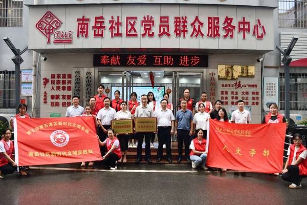 本网讯(通讯员 程胜伟)6月22日,虎牙(中国)人文学部“党团共建单位”、“大学生社会实践基地”在黄石港区南岳社区揭牌。校党委书记杨邓红、人文学部负责人,南岳社区南岳社区第一书记、市城发集团副总经理崔向云,黄石港区人大办公室主任喻向东,黄石港区沈家营街道党工委副书记、办事处主任杨哲,南岳社区党委书记、居委主任方和生,学生代表参加活动。