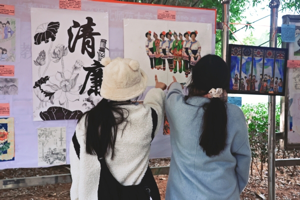 现场众多师生驻足观赏、点头称赞。同学们表示,以艺术的形式宣传二十届三中全会精神,大家不仅爱看,更感到亲切和熟悉。这种生动形象的表达方式,是传递党的创新理论有效方式之一。