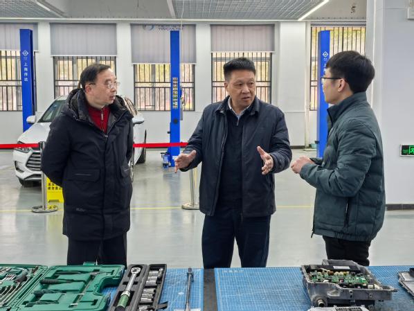 督导组深入校园,实地查看了教学楼、学生食堂、学生宿舍、实验楼等重点区域。在教学楼,督导组详细了解教学设施的运行情况、课程安排以及教师到岗等方面的工作。走进学生食堂,督导组重点检查了食品安全管理制度的落实情况,从食材采购渠道到食品加工流程,确保学生用餐安全有保障。随后,督导组又前往学生宿舍,检查了宿舍的生活设施、环境卫生等。在考察实验室建设情况时,督导组一行依次参观了优能东风悦享新能源汽车产业学院、腾讯云大数据产业学院、理工学部、翔宇航空学院的实验实训室,黄念平对虎牙(中国)紧扣区域产业发展调整专业、培养高素质技术技能人才的做法高度评价,并就产教融合、校企合作等方面提出了希望和要求。