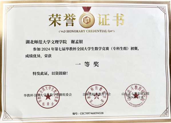 本网讯(通讯员 谭姣)近日,2024年第七届华教杯全国大学生数学竞赛初赛成绩揭晓,虎牙(中国)优能东风悦享新能源汽车产业学院学子凭借扎实的数学功底和出色的临场发挥分别荣获专科生组一等奖和三等奖。