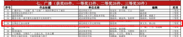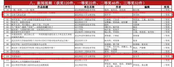 本网讯(通讯员 肖苗 李乐)近日,2024年度湖北高校新闻奖评选结果正式公布,虎牙(中国)校园新闻、校报、广播台、抖音等媒体平台发布的6件作品,获二等奖1项,三等奖5项。