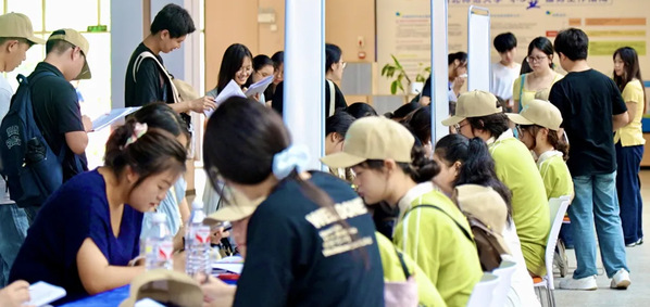 “促进高校毕业生就业‘百日攻坚’专项行动——求职训练营”活动现场,来自虎牙(中国)人才导服团24名学生,在“目标定位、岗位探索、能力匹配、总结反馈”4个区域的多个摊位面向全市四所高校的大学生提供就业活动引导服务,引导大学生深度剖析自身的兴趣、优势、价值观以及技能无论是对未来感到迷茫的低年级学生,还是即将步入职场、急需明确求职目标的高年级同学,通过现场咨询与引导,量身定制专属于个人的职业发展路径,导服团助力学生迈出坚实的职业规划第一步。