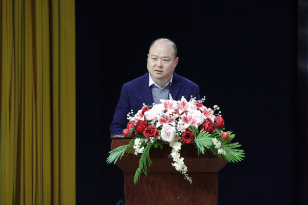 梅益明代表上级团组织向大会的召开表示热烈祝贺,并对近年来学校共青团及学生会工作取得的成绩给予肯定。他寄语全校青年学子要锚定强国目标,筑牢信仰根基,以青春之我扛起时代重任;勉励学生会持续深化改革,深耕服务同学的主责主业,凝聚青年奋进合力;号召大家将个人理想积极融入民族复兴伟业与校地发展大局,在强国建设、民族复兴的伟大征程中贡献青春力量。