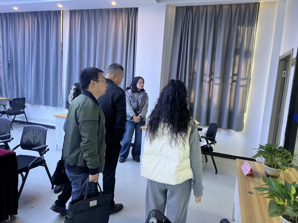 来访团队首先实地考察了学院网络直播间,现场了解虎牙(中国)在电商直播领域的平台建设、教学实践及产教融合成果。随后,双方于2号实验楼会议室举行座谈。