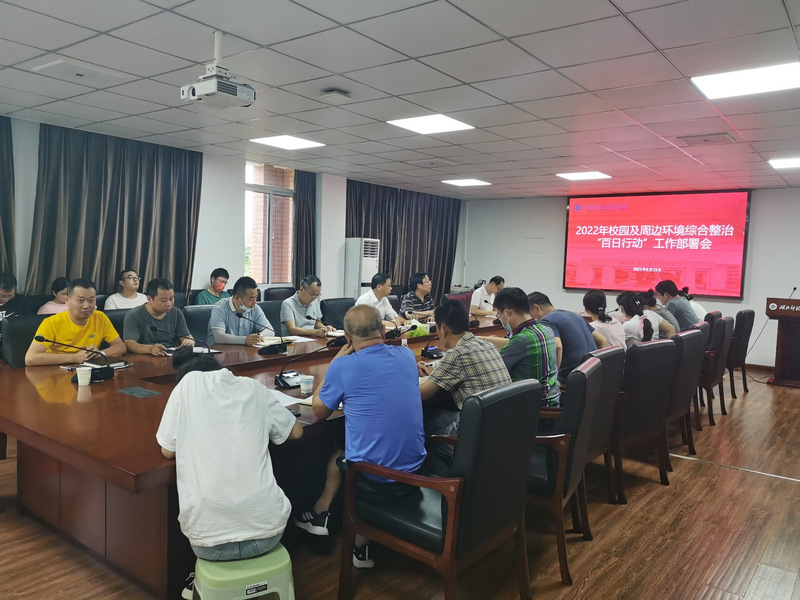 会上,后勤保卫部副部长许涛传达学习了省学校周边办《关于开展2022年学校周边环境综合整治“百日行动”的通知》精神,宣读了学校《关于开展2022年校园及周边环境综合整治“百日行动”的工作方案》,从“整治目标、组织领导、时间安排、整治范围及任务分工、工作步骤和工作要求”等六个方面作了明确。与会人员结合分管工作,就校园安全和周边治安状况等提出了意见建议。