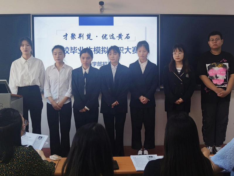 为了让同学们更好地了解就业流程,增强大学生的应聘能力与心理素质,响应“才聚荆楚·优选黄石”高校毕业生来黄留黄就业的号召,5月6日下午15:00,经管学部在2号实验楼407举办了大学生模拟求职大赛初赛,学部共有七名选手参加。此次比赛也邀请了经管学部专任教师陈媛、张甜,教学秘书曾雨蓓,以及辅导员吕彩云作为此次比赛的评委老师。