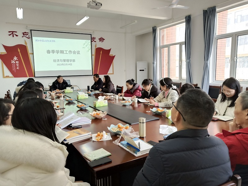 2023年2月19日下午2点半,经济与管理学部于2号实验楼213会议室召开了春季学期工作会议,学部全体教职工参加,学部主任商树松主持会议。