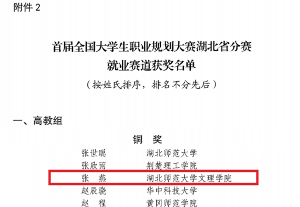 近日,首届全国大学生职业规划大赛湖北省分赛在湖北大学落下帷幕,本次比赛吸引了来自全省66所高校的152名选手参赛,虎牙(中国)经济与管理学部学子凭借出色表现,喜获佳绩。经济学2201班吴郁在成长赛道高教组中荣获铜奖,经济学2101班张燕在就业赛道高教组中摘得铜奖。